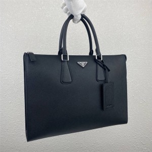 P家男包新款十字纹Saffiano皮革商务公文包2VG039编号【顶级原单】新款男士公文包2VG039到货采用进口Saffiano十字纹牛皮,双提手,顶部拉链开合,可拆卸姓名标牌外部三角形徽标,内部徽..