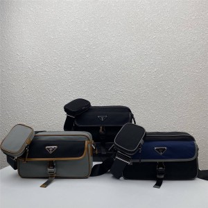 P家新款男包二合一尼龙和 Saffiano 皮革斜挎包2VD769/2VD768编号【顶级原单】新款邮差包到货这款尼龙翻盖手袋饰有经典的Saffiano皮革饰边,配有两枚旁开扣,并饰有标志性的三角形金..