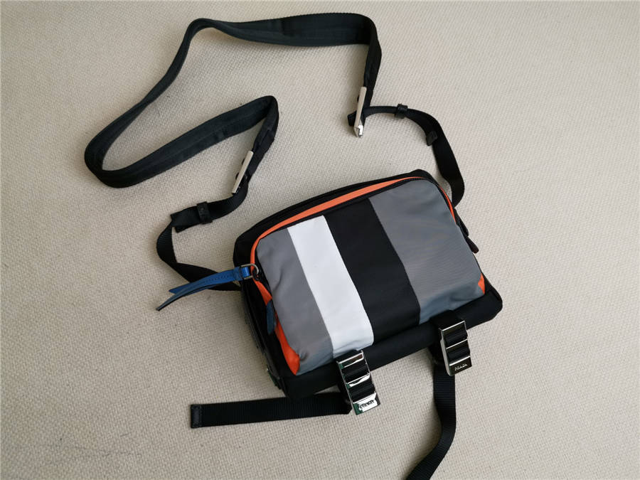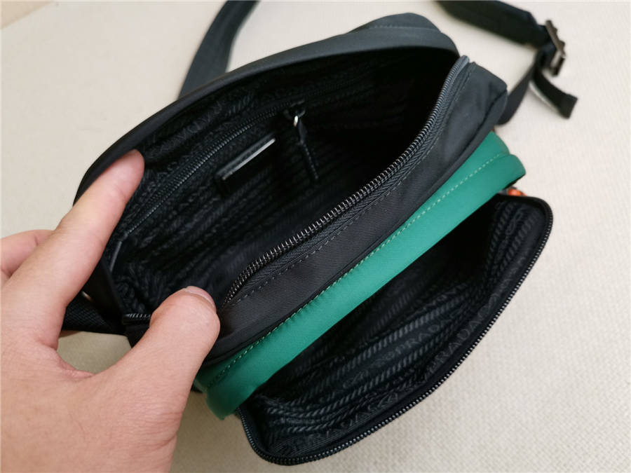 Prada/普拉达代购男包新款真皮拼接尼龙布斜跨包腰包胸包编号Prada斜挎包、胸包,采用尼龙和小牛皮制作,降落伞布料防水透气,轻便耐用,正面饰以三角形徽标。口袋多,做工复杂,日常出行非常方便实用,尺..
