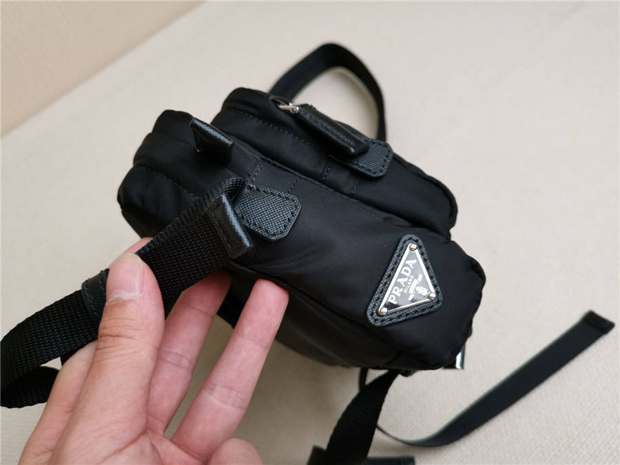 Prada/普拉达新款男士尼龙和皮革腰包2VL132编号Prada 腰包,采用尼龙和小牛皮制作,带涂珐琅Prada 徽标装饰。正面两个口袋,插扣扣合。尺寸: 34×..