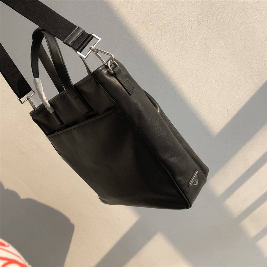 纯原PRADA/普拉达男士拉帕牛皮公文包(手提包 斜挎包 邮差包), 165代工厂出。整个包身都是采用原厂拉帕牛皮 ,用高端大气上档次形容它都不为过,手感摸上去超级柔软,拉帕就是牛身上最细腻的部分,这部分不多量很少也很贵,五金部分银色亮面五金件、 徽标牌和外部侧面三角形为搪瓷徽标金属。可调式织物肩带,织物衬里 内里扣件大容量足 。支持对比!尺寸:36/33/8cm bikk