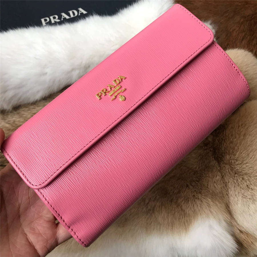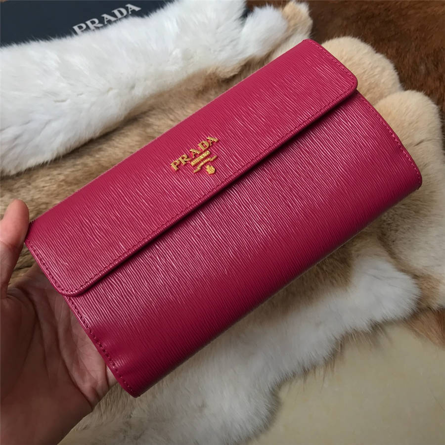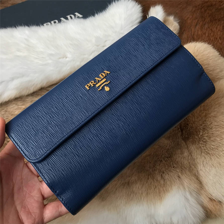 Prada/普拉达代购女士长款钱包新款水波纹真皮翻盖钱夹1MH133