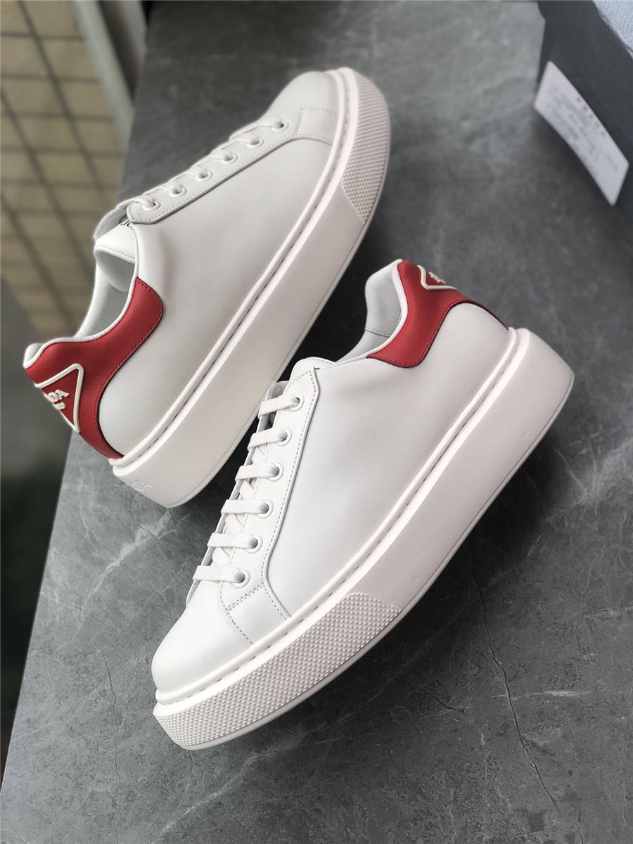 原单正品 新款 Prada 普拉达运动男鞋 系带小黑鞋 官网在售 3.5厘米厚底 面是进口小进口牛皮 舍口热印徽标 内里小牛皮 底是原厂EVA橡胶射出轻质条格防滑底 脚感舒服 码数39 40 41 42 43 44 标准皮鞋码 原盒包装。efk